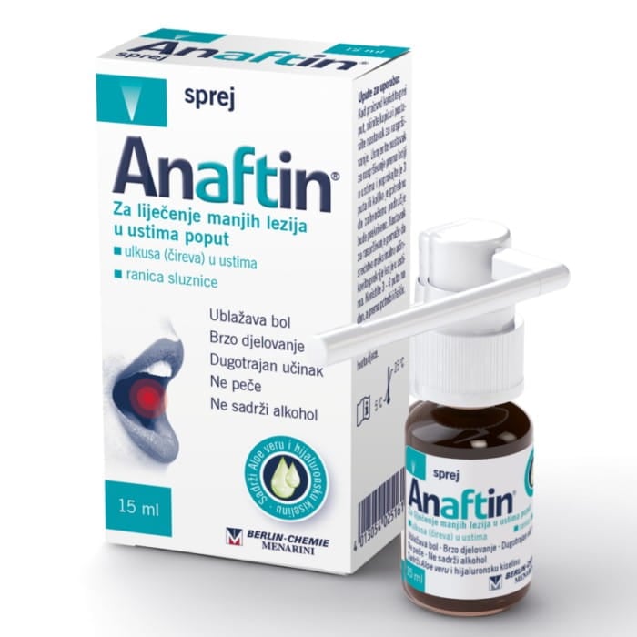 Anaftin sprej pomaže kontrolirati bol koju uzrokuju manje lezije u ustima poput onih uslijed aftoznog stomatitisa, aftoznih ulkusa (čireva), kao i manje lezije nastale uporabom zubnih aparatića ili neprikladnih umjetnih zubala.
