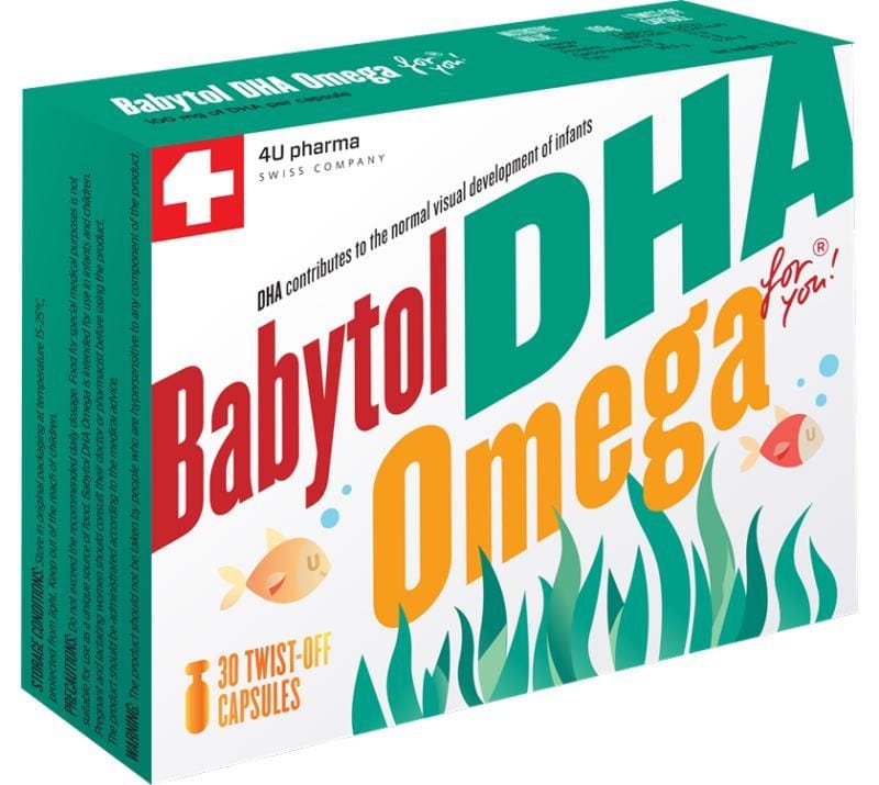 Ukoliko Vaša beba prima Babytol D3 + K1 for you! do kraja trećeg mjeseca nakon rođenja, preporučeno je da se uz Babytol D3+ K1 daje Babytol DHA Omega! (čisti DHA u dozi od 100 mg dnevno). Poslije završetka primjene Babytol D3+K1 nastavite sa primjenom Babytol D3 + DHA Omega, jer Babytol D3 + DHA Omega sadrži DHA i vitamin D3 neophodan vašoj bebi do kraja treće godine.