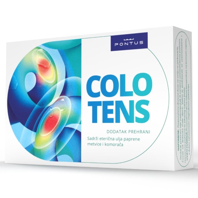 Colotens kapsule pomažu olakšanju grčeva i nadutosti uz pomoć prirodnih sastojaka – eteričnog ulja lista paprene metvice i eteričnog ulja sjemenki komorača. Colotens sadrži visoke doze pročišćenih eteričnih ulja.