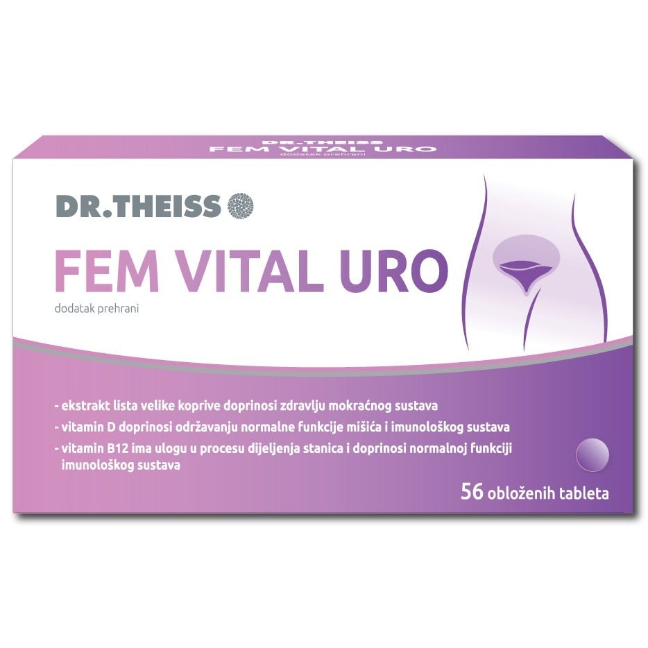 Fem Vital Uro kombinira biljne ekstrakte sjemenki bundeve i soje, ekstrakt velike koprive, prah soka brusnice, vitamine D i B12. FEM VITAL URO dobra je podrška ženama, osobito u vrijeme menopauze kada je povećan nagon za mokrenjem.