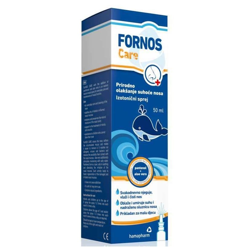 ForNos Care s dodatkom pantenola i aloe vere je izotoničan prirodni sprej za nos za svakodnevnu njegu i održavanje funkcije nosa. Koncentracija soli je usklađena s prirodnom razinom u tijelu pa djeluje umirujuće na nos.