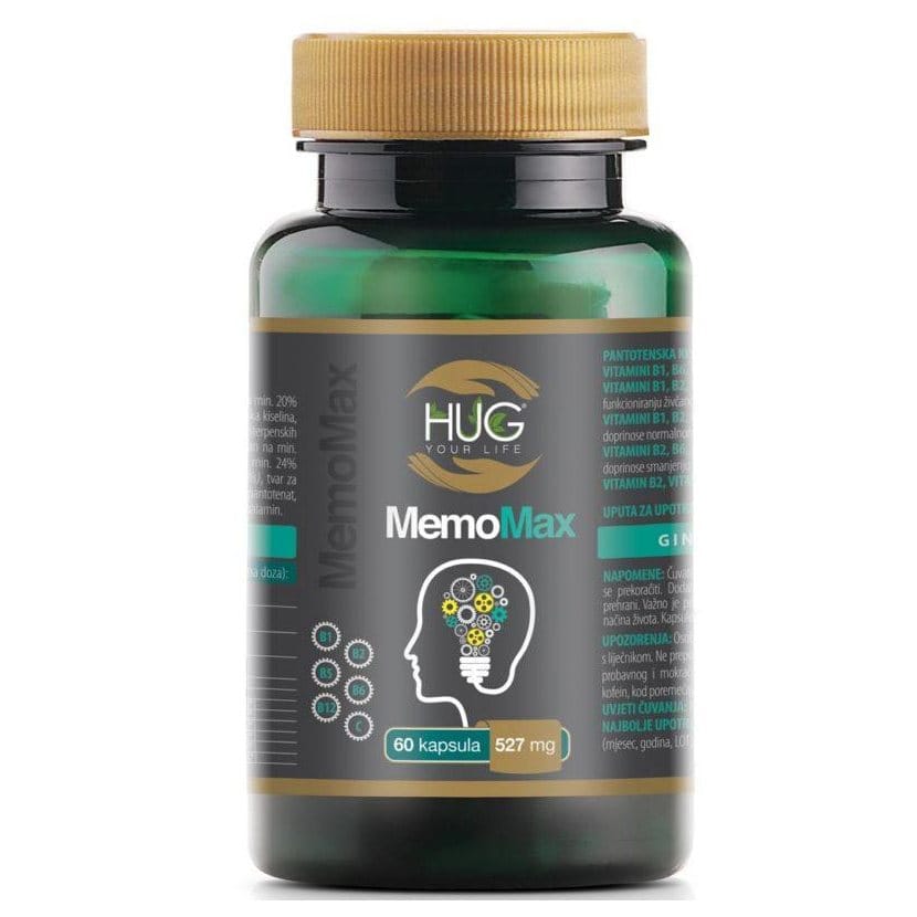 MemoMax je proizvod s 5 različitih biljnih ekstrakata među kojima su bakopa, gotu kola, ginko, guarana i melisa u sinergiji s koenzimom Q10. Proizvod je dodatno poboljšan vitaminom C koji doprinosi normalnoj psihološkoj funkciji i vitaminima B skupine uključujući i pantotensku kiselinu koja doprinosi normalnim mentalnim performansama.