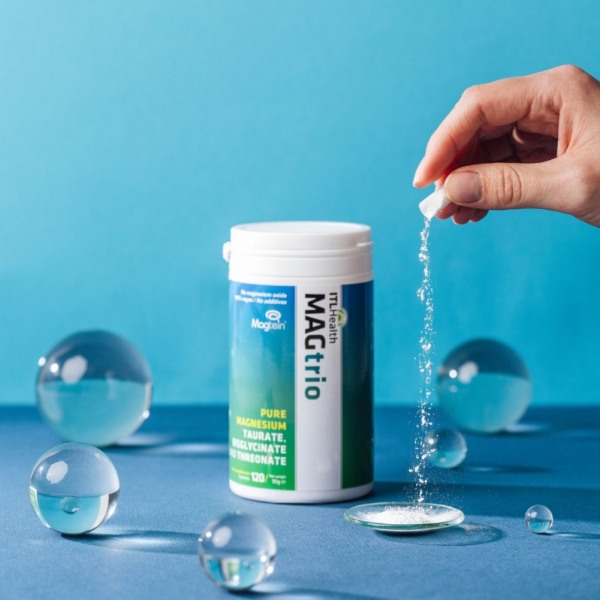 Jedan od oblika magnezija u proizvodu MAGtrio je patentirani oblik magnezijeva L-treonata, Magtein®. Istraživanja o Magteinu® pokazuju da učinkovito prelazi krvno-moždanu barijeru i povećava razinu magnezija u mozgu više od drugih oblika magnezija.* Prikladno za vegane i vegetarijance.