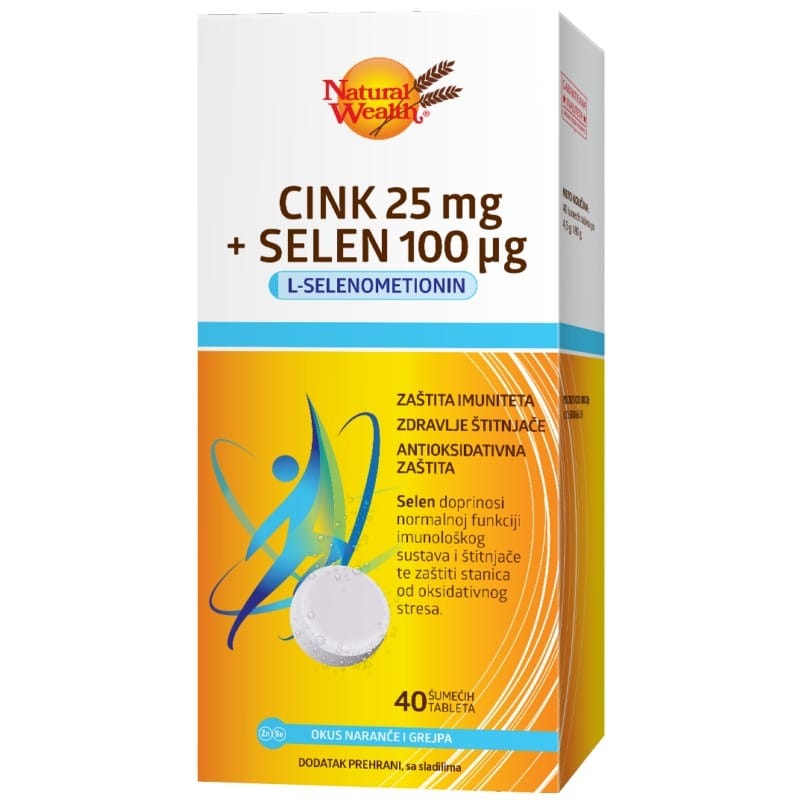 Natural Wealth® Cink 25 mg + Selen 100 µg u obliku šumećih tableta sadrži snažne doze cinka i selena, minerala iznimne važnosti koji imaju brojne uloge u ljudskom organizmu.