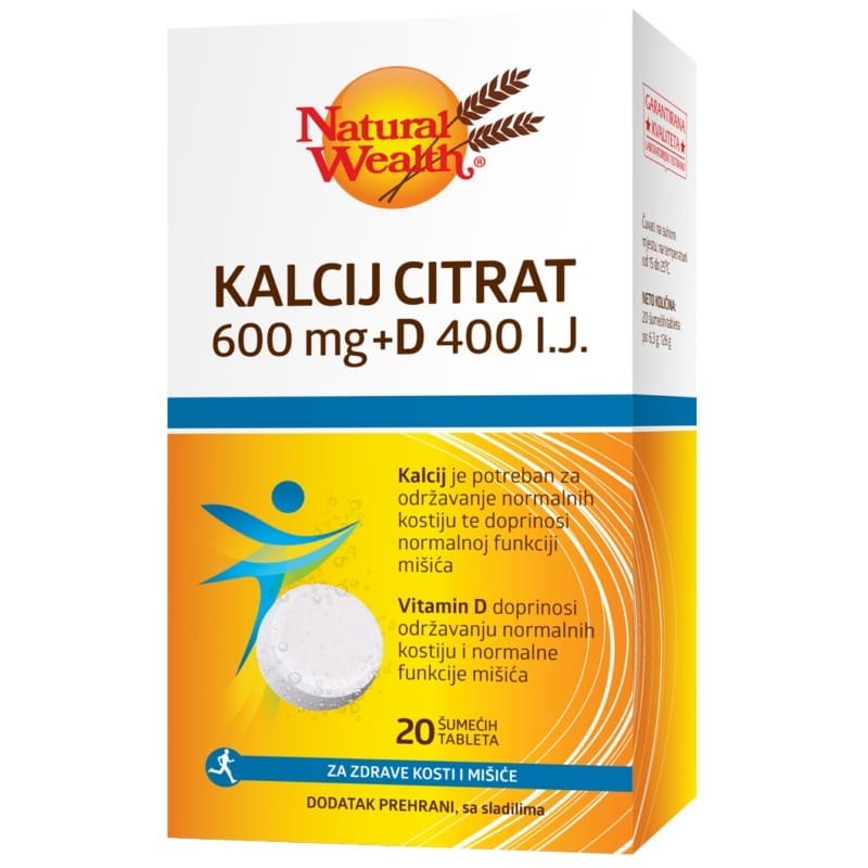 Natural Wealth Kalcij Citrat 600mg + D 400 i.j. 20 šumećih tableta