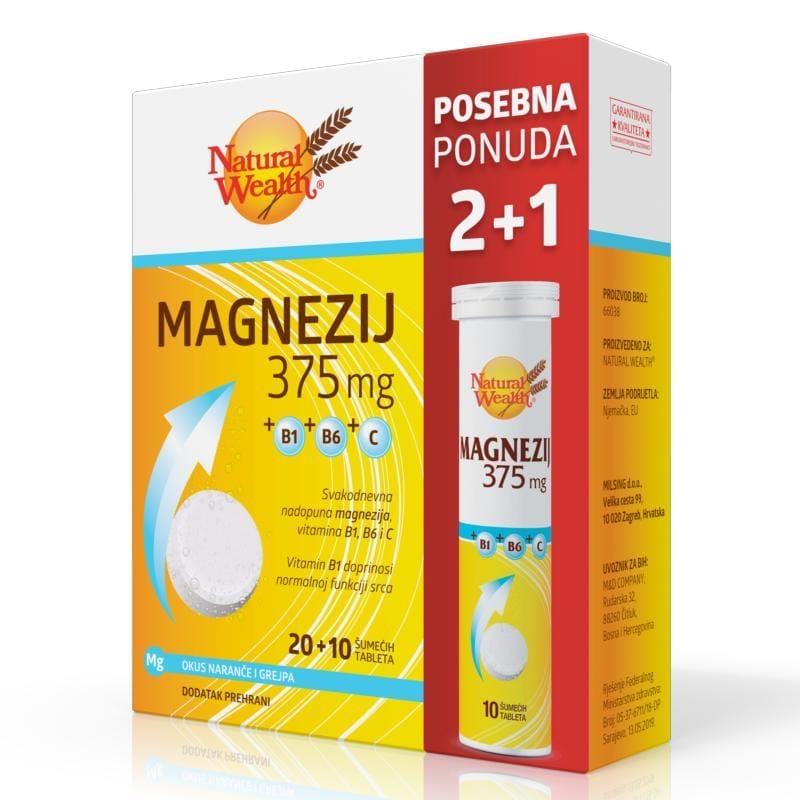 Natural Wealth Magnezij 375mg+B1+B6+C + GRATIS