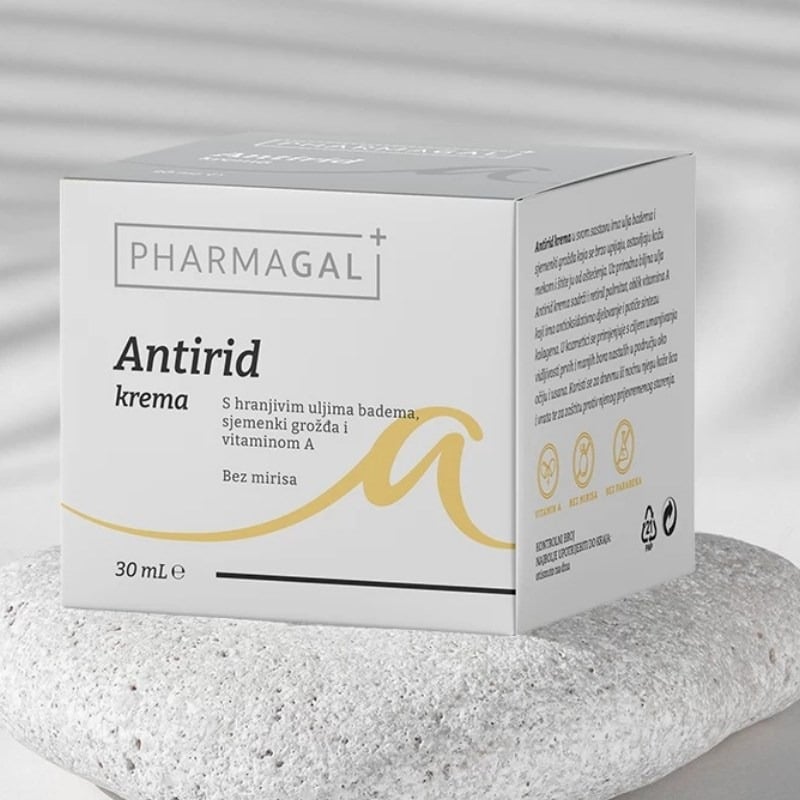 Antirid krema u svom sastavu ima ulja badema i sjemenki grožđa koja se brzo upijaju, ostavljaju kožu mekom i štite ju od oštećenja.