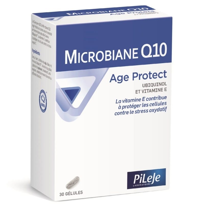 Dodatak prehrani na bazi ubikvinola Kaneka QH, jednog od oblika koenzima Q10 i vitamina E. Microbiane Q10 Age Protect osigurava unos najnovije generacije koenzima Q10 u obliku ubikvinola s najboljim bioraspoloživim profilom.