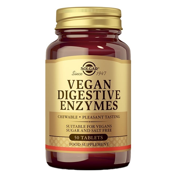 SOLGAR PROBAVNI ENZIMI tablete su za žvakanje posebno osmišljene za vegane.