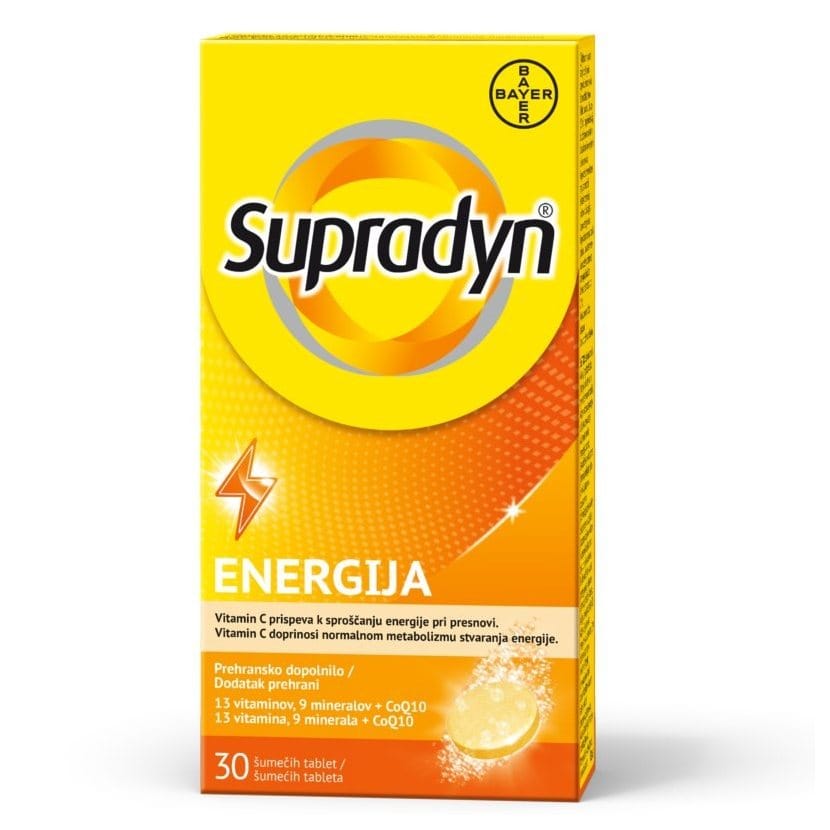 Supradyn energija sadrži jedinstvenu formulaciju vitamina, minerala i koenzima Q10. Proizveden je upravo za poticanje vaše prirodne tjelesne unutrašnje energije.