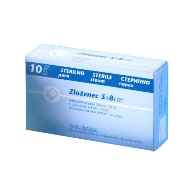 Sadržaj: Sterilne komprese od gaze 5×8 cm 16 slojni, sterilni, 10 kom, 1 paket.