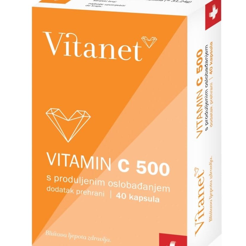 VITANET Vitamin C 500mg s produljenim oslobađanjem sadrži vitamin C koji doprinosi normalnoj funkciji imunološkog sustava.