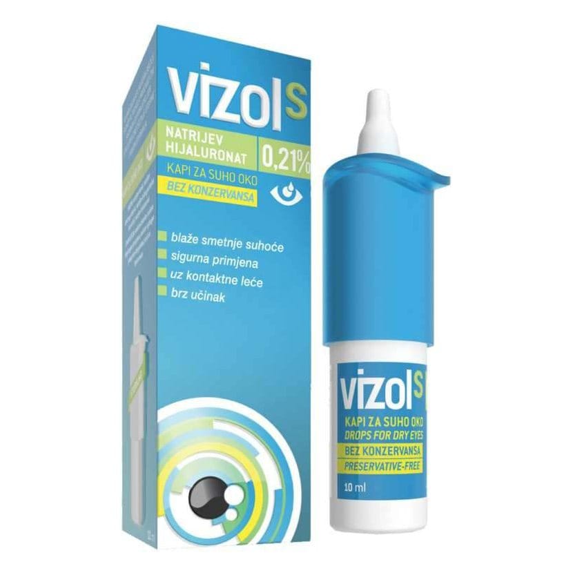 Vizol S 0,21% kapi za oko namijenjene su za ublažavanje blažih smetnji suhog oka. Mogu se koristiti i tijekom nošenja kontaktnih leća.
